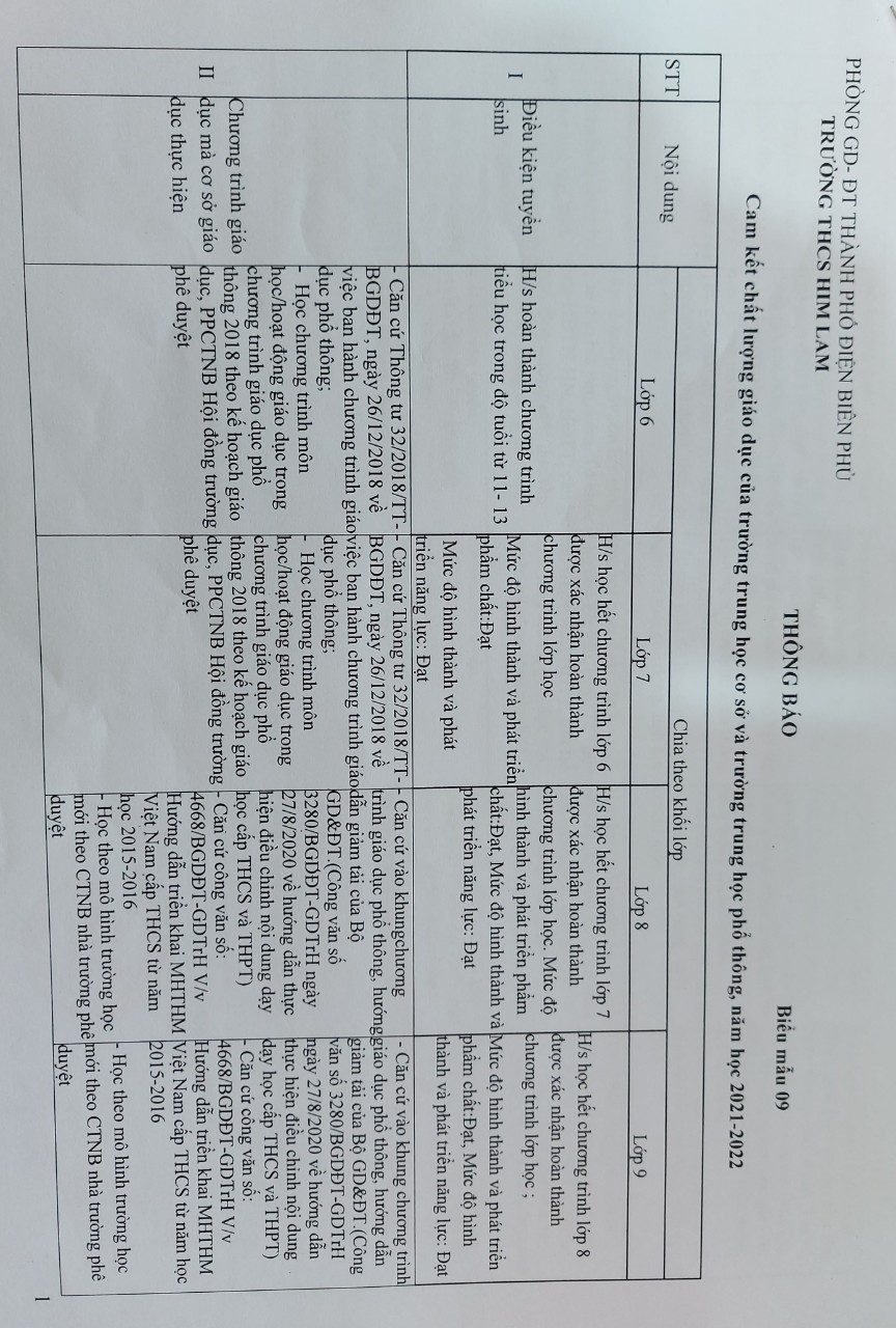 Danh sách học sinh trúng tuyển ngoài địa bàn phường Noong Bua vào lớp 6 trường THCS Him Lam Năm học 2025 - 2026